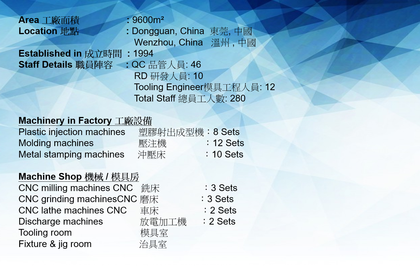 Factory Introduction 工廠簡介