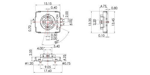 - Operating force 操作力: Push: 3N+/-1N ,Rotary: 3N+/-1.5N